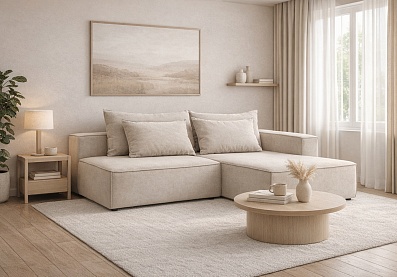 Диван Челси с оттоманкой, Д4 Светло-бежевый (Avelina 9534), Микровелюр
