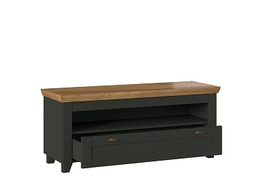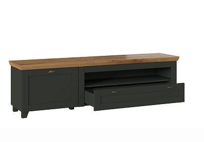 - Тумба на деревянных опорах с выдвижным ящиком, нишей и распашным фасадом;