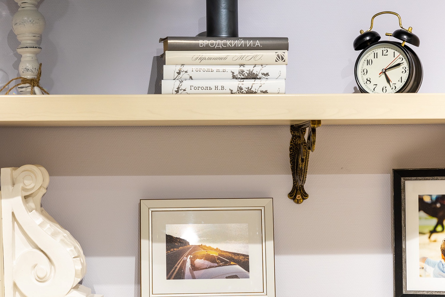 - Полка АГ-025.03 навешивается на стену на декоративных менсолодержателях (МакМарт);