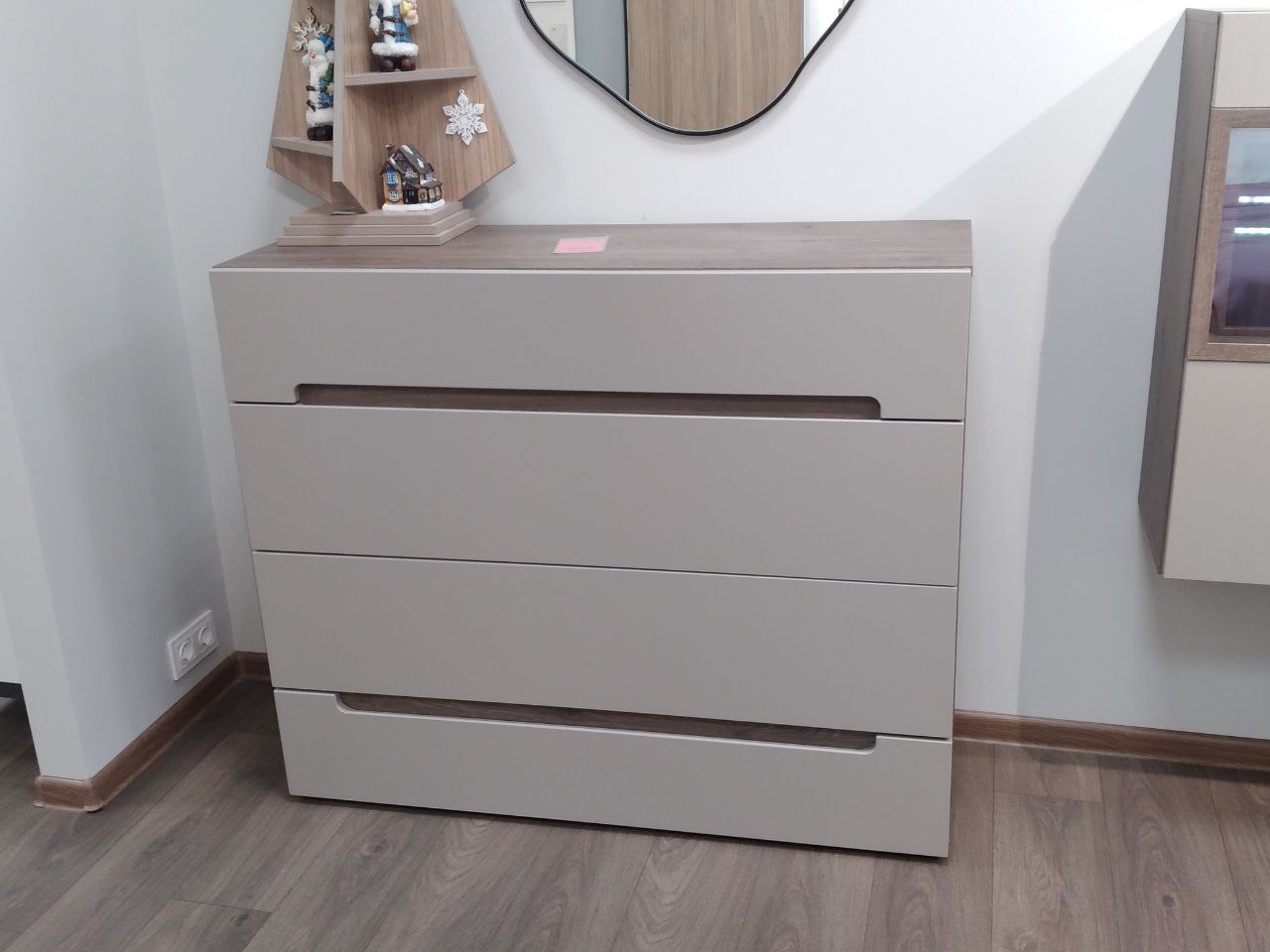 - Комод напольный с четырьмя выдвижными ящиками (каждый ящик с двумя отделениями). В выдвижных ящиках используются направляющие скрытого монтажа со встроенным доводчиком;